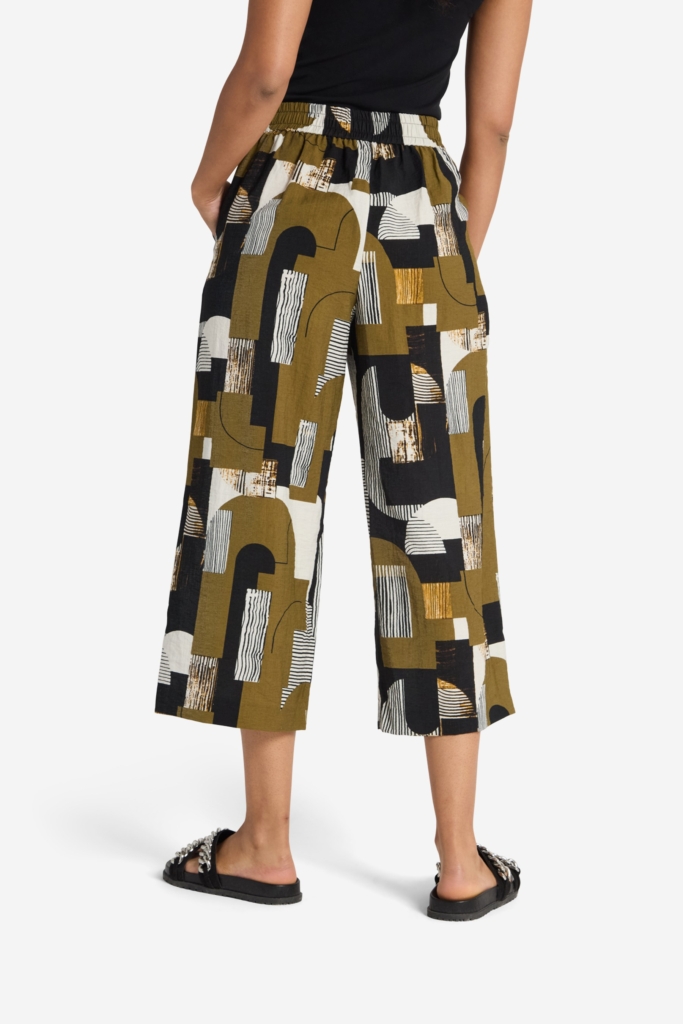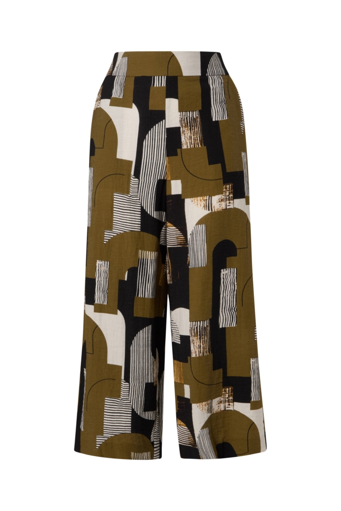 Vid byxa med stormönstrat print och skön struktur.