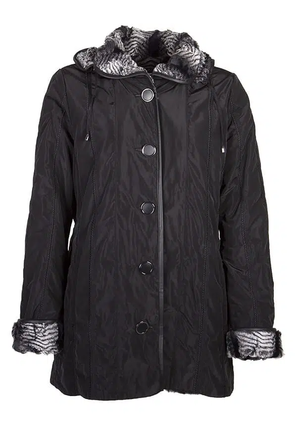 Vändbar jacka, -svart, svart/ grå fuskpäls