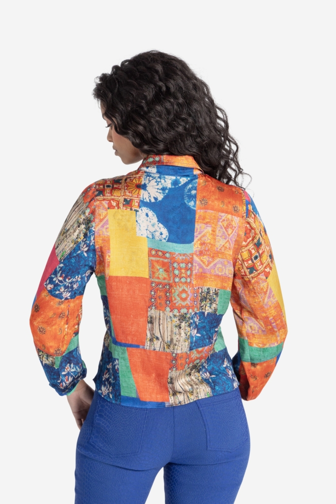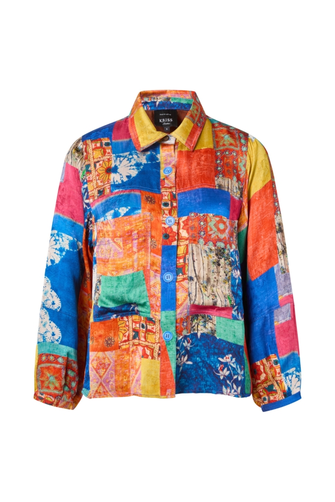Elegant skjortjacka med färgglatt print och glans i tyget.