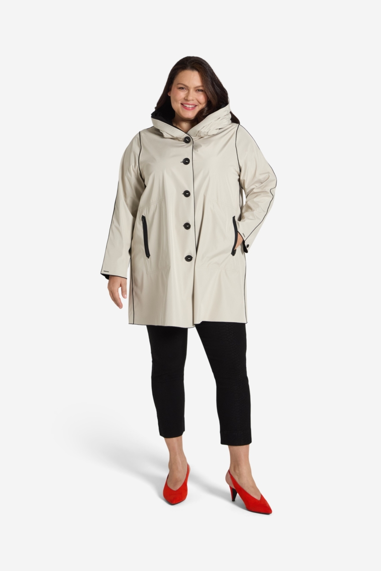 Jacka Lilli är en mysig jacka/ kappa med mjuk fuskpäls och stor krage. Dold knäppning med stora tryckknappar på en botten av fakeskinn på insidan. Lång ärm samt ficka i sidan av plagget. Modellen är rak i passformen och fodrad på insidan. Den totala längden i storlek S är 84 cm från den högsta punkten under kragen.