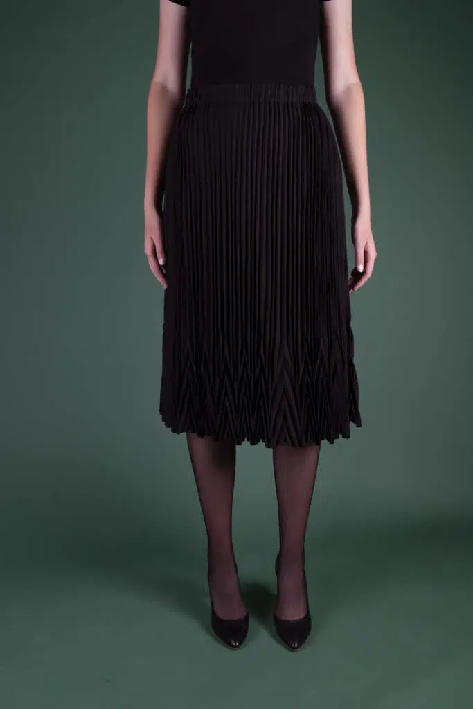 Plisserad kjol med resår i midjan. Plisserade sick-sack detaljer i nederkant.