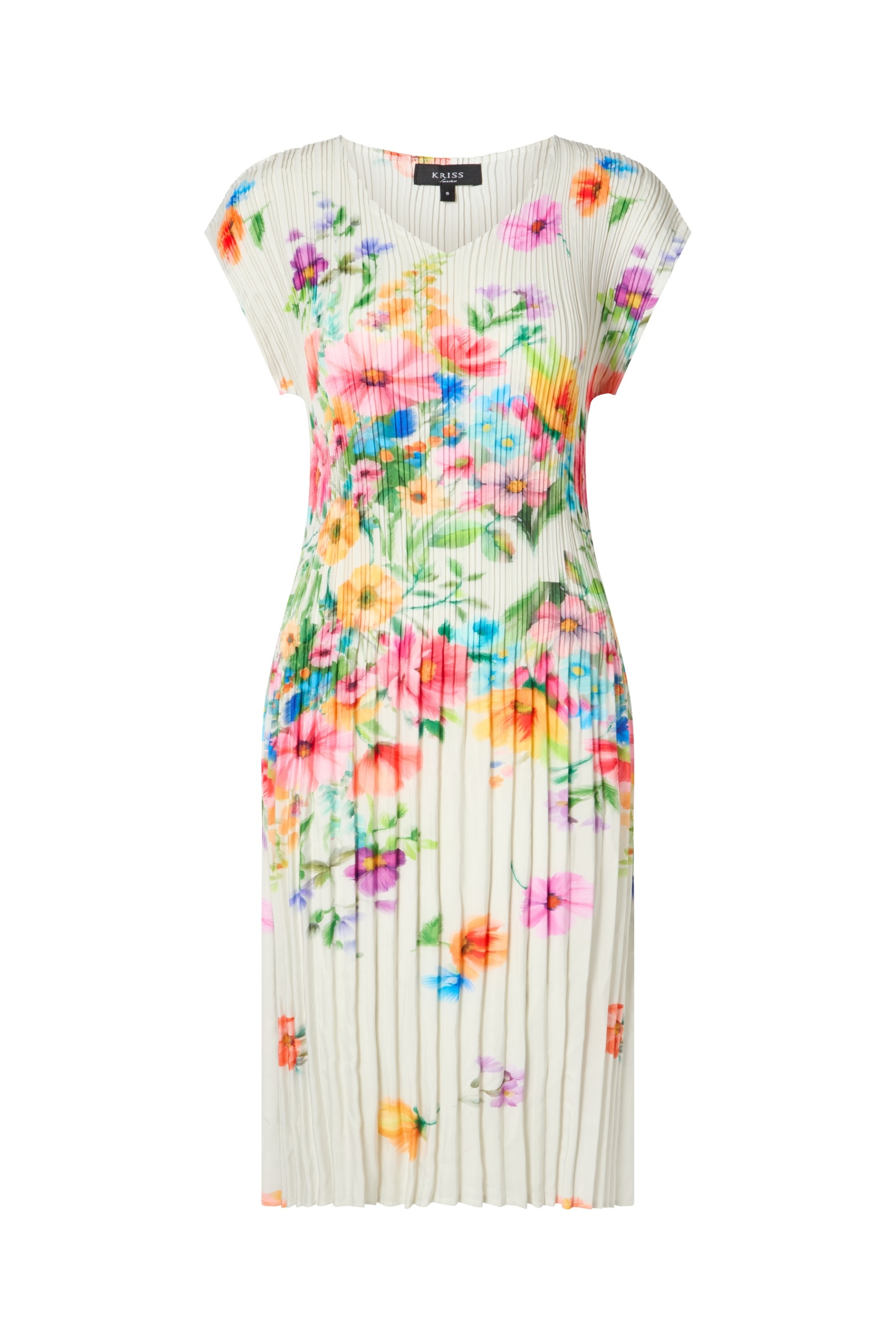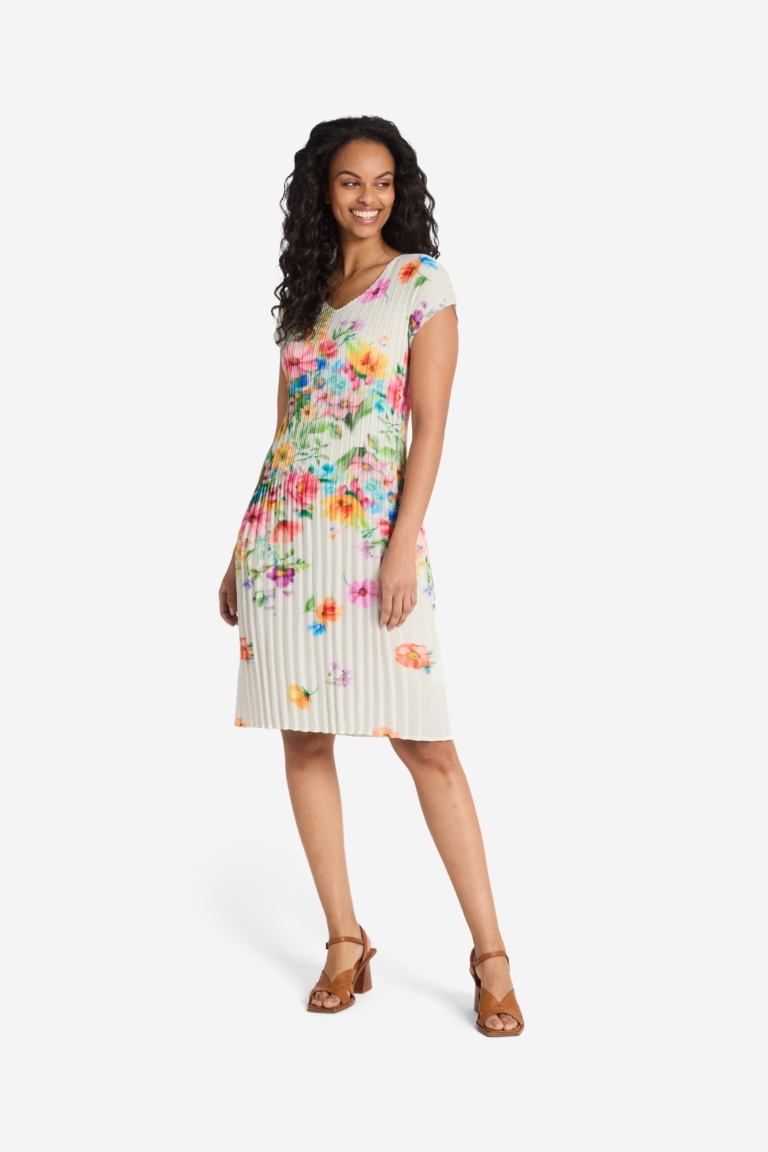 Feminin klänning med blommönster, -marin/ offwhite