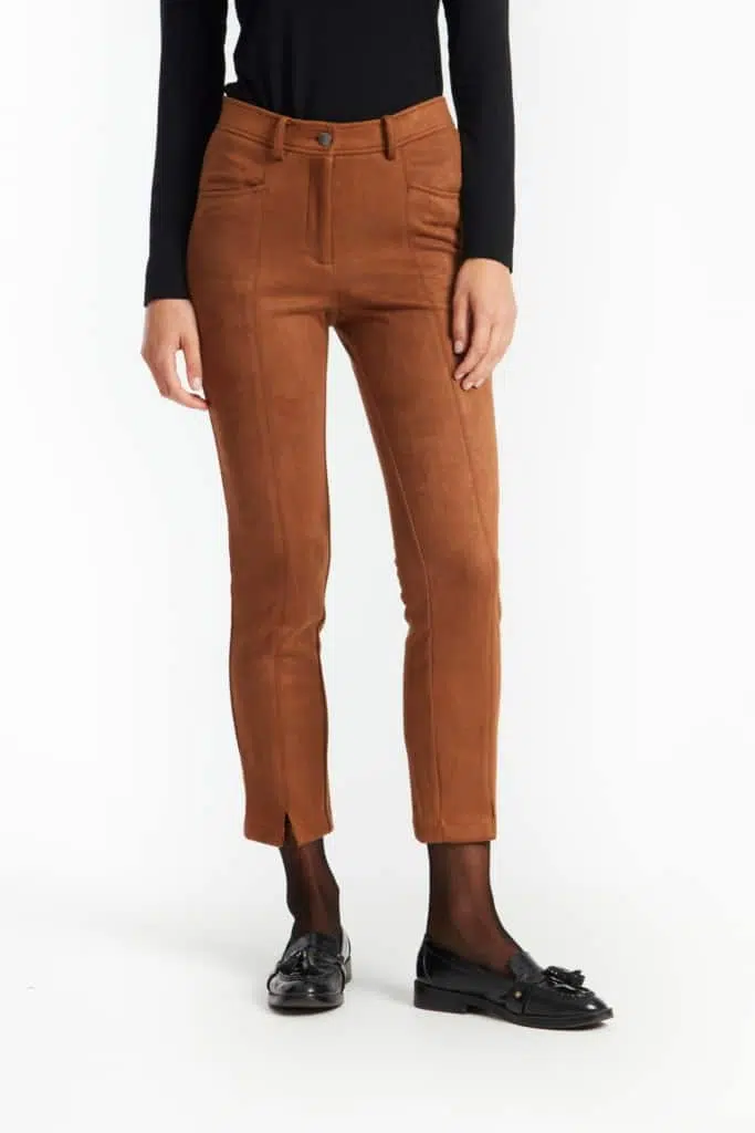 Snygg byxa i skön och stretchig fuskmocka.