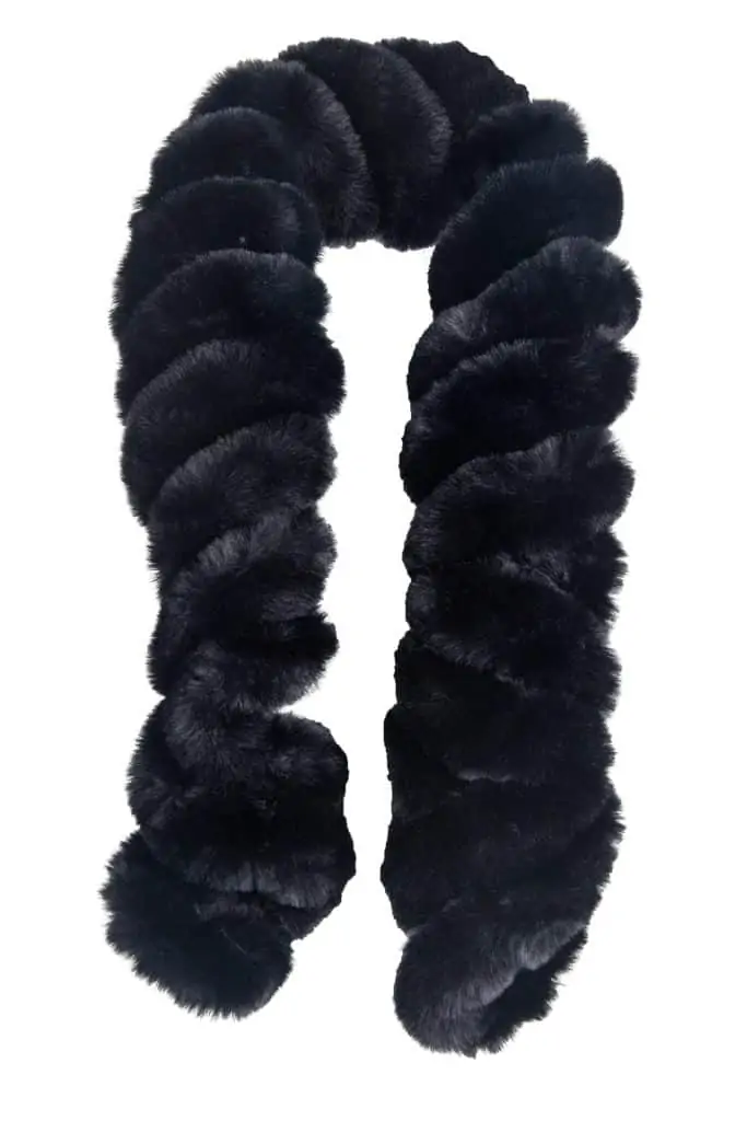Lyxig scarf i fuskpäls som är tvinnad med två separata delar, ihop sydda med garn i samma färg. Scarfen ligger snyggt runt halsen och är lika fin till ytterplagget som till favorittröjan. Den totala längden är 115 cm.