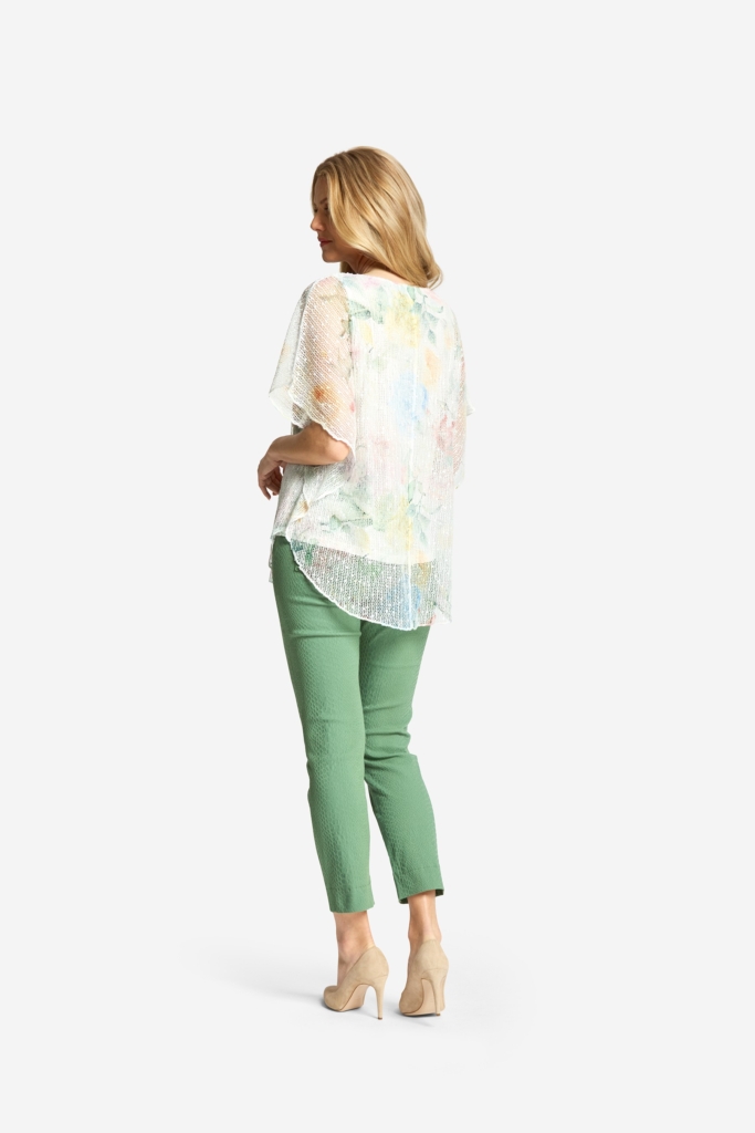 Vacker spetstopp i fjärilsmodell med blomprint, på ett nätliknande material som är följsamt mot kroppen. Öppen fjärilsärm som är ihopsydd under ärmen. Påsydd spetsbård vid avskärningen över byst och rundad nederkant. Toppen är fodrad med ett mjukt och stretchigt linne i polyester/ viskos med mellansmala axelband. Längden i storlek S är 73 cm från högsta punkten. Modellen på bilden är 178 cm lång och bär storlek small. Våra större storlekar är normala i storleken, medan våra mindre storlekar är något mer generösa.