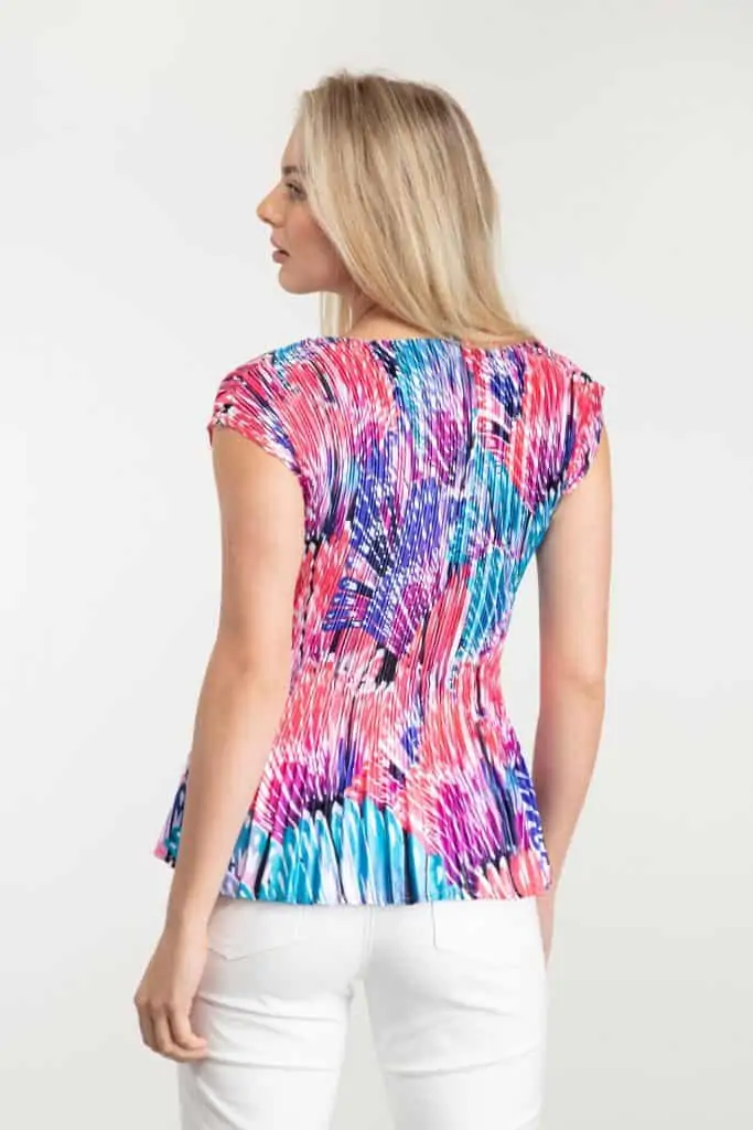 Plisserad topp med tufft print, -svart/ petrol/ cerise