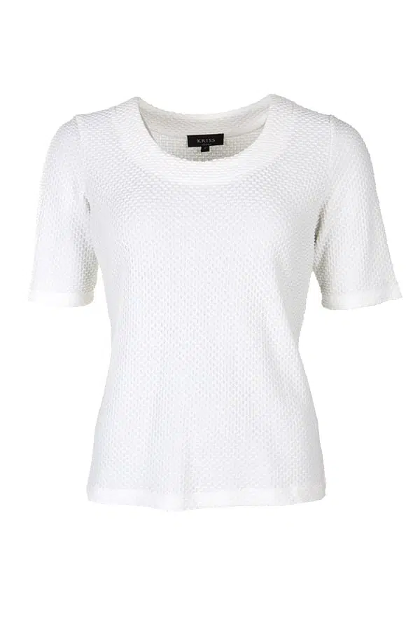 Underbar topp med struktur som är mjuk och följsam. Klassisk passform med något insvängd midja, kort ärm och en rund halsringning.