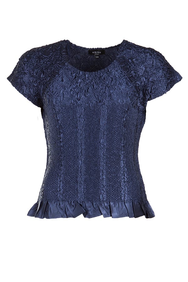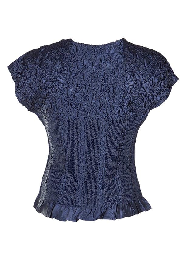 En favorit med klädsam fyrkantshalsringning och en liten holkärm som täcker axeln. Krinklad, sidenmjuk och glansig kvalitet som är lätt att sköta. Matchar fint under kavaj/jacka eller att använda precis som den är. Enkel men med en exklusiv känsla.
