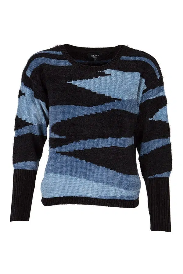 Mjuk stickad tröja i olika garnkvaliteter, -blå/ svart