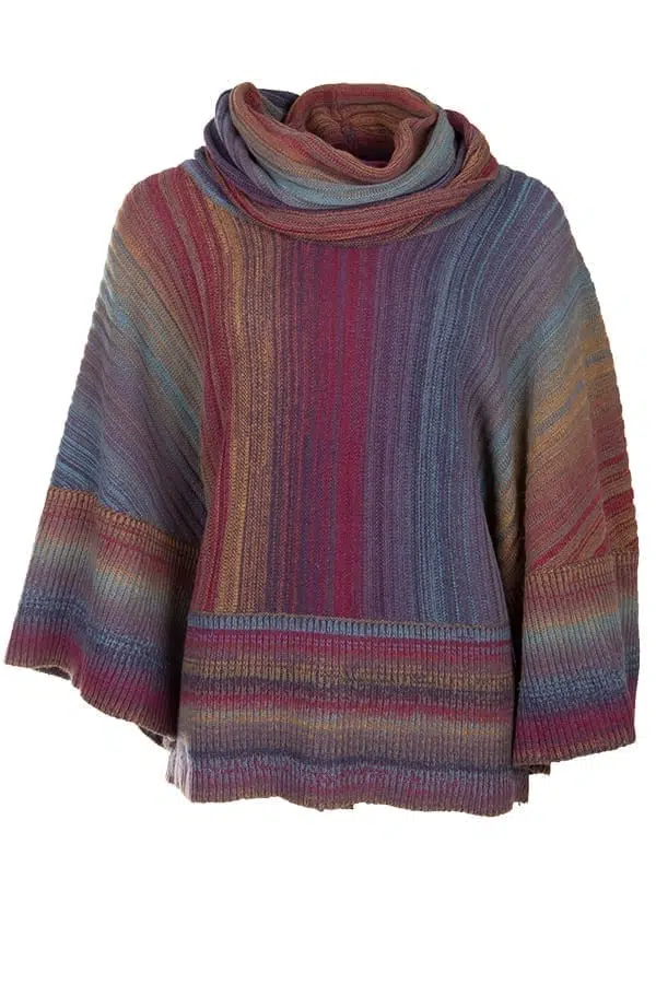 Härlig polotröja med vid ärm som är stickad med ett höstigt multifärgat garn som ligger åt olika ledder, vilket skapar spännande kontraster.