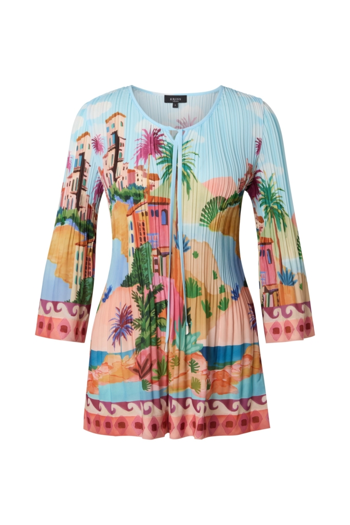 Plisserad tunika i skön kvalitet med placerat print.